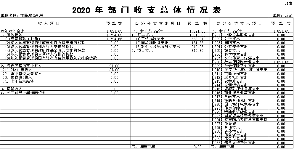 (一)收支预算总表