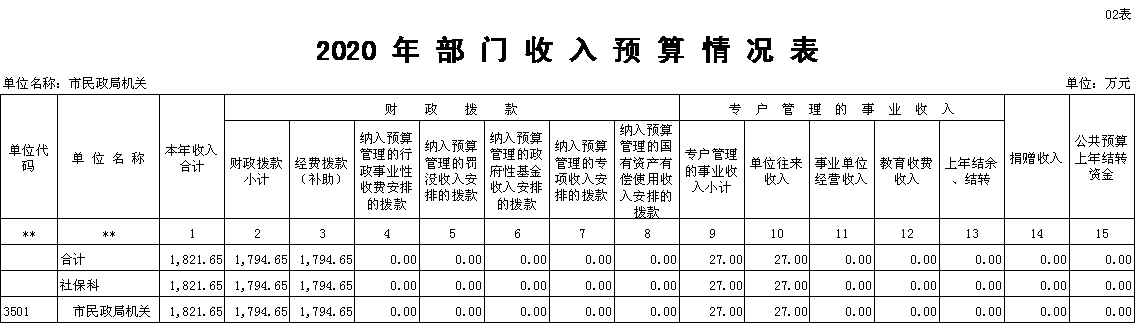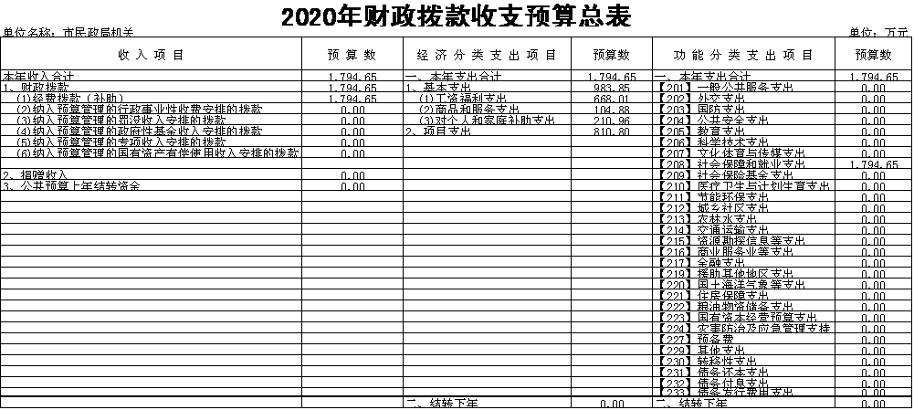 四、2020年部门预算公开表
