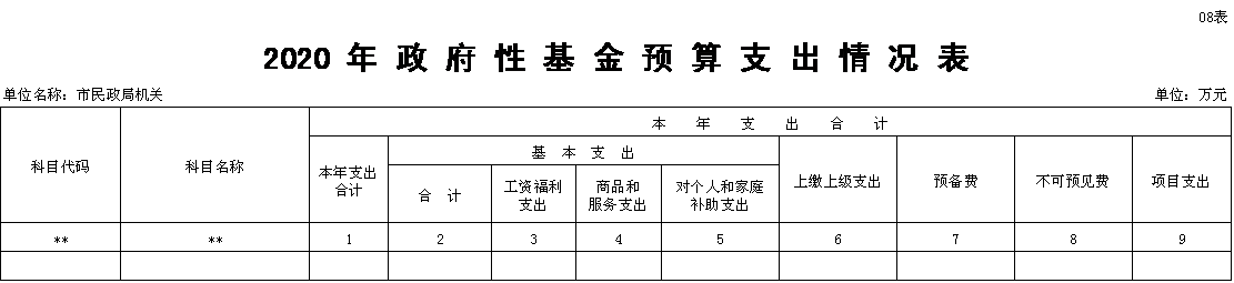 (八)政府性基金预算支出表