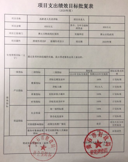 五、项目支出绩效目标批复表