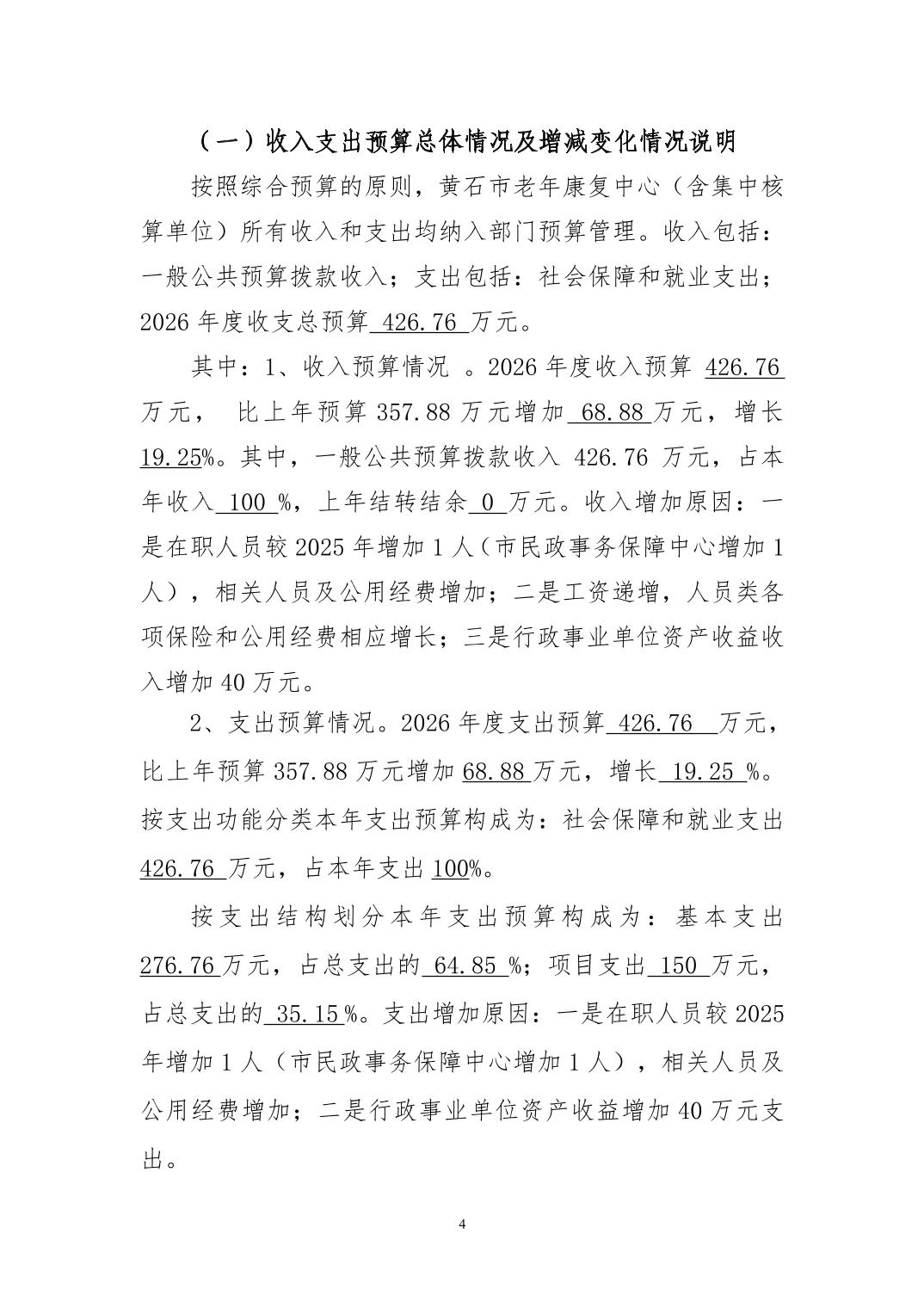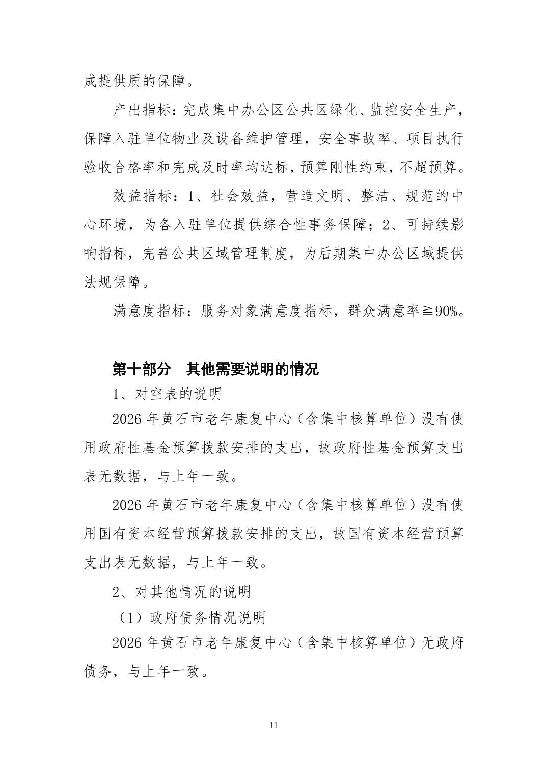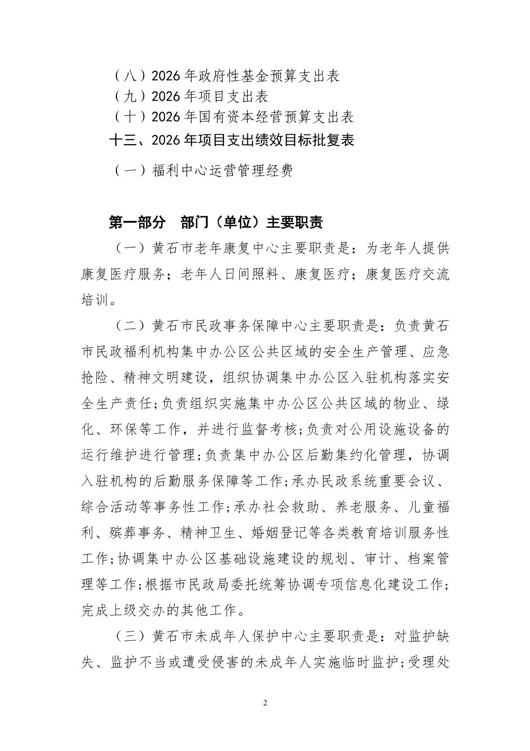 2026年度黄石市老年康复中心部门预算公开情况说明