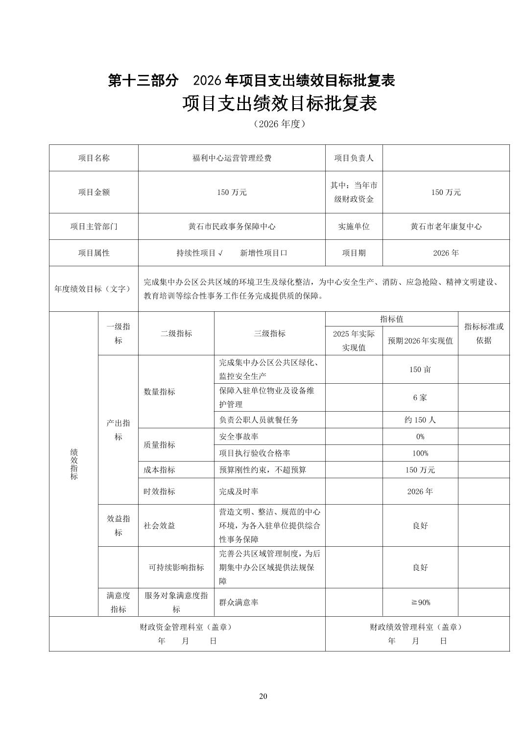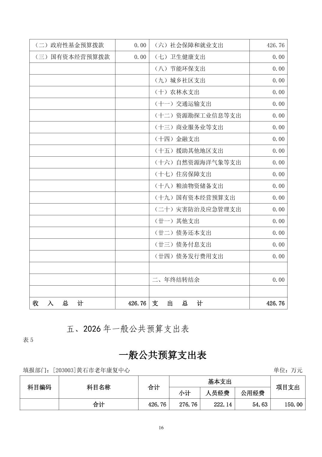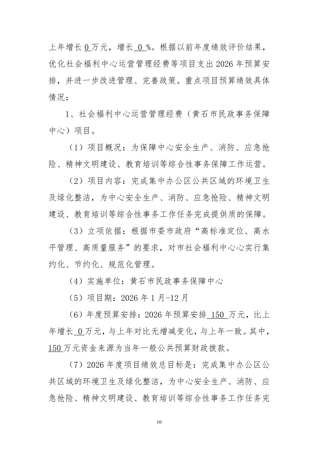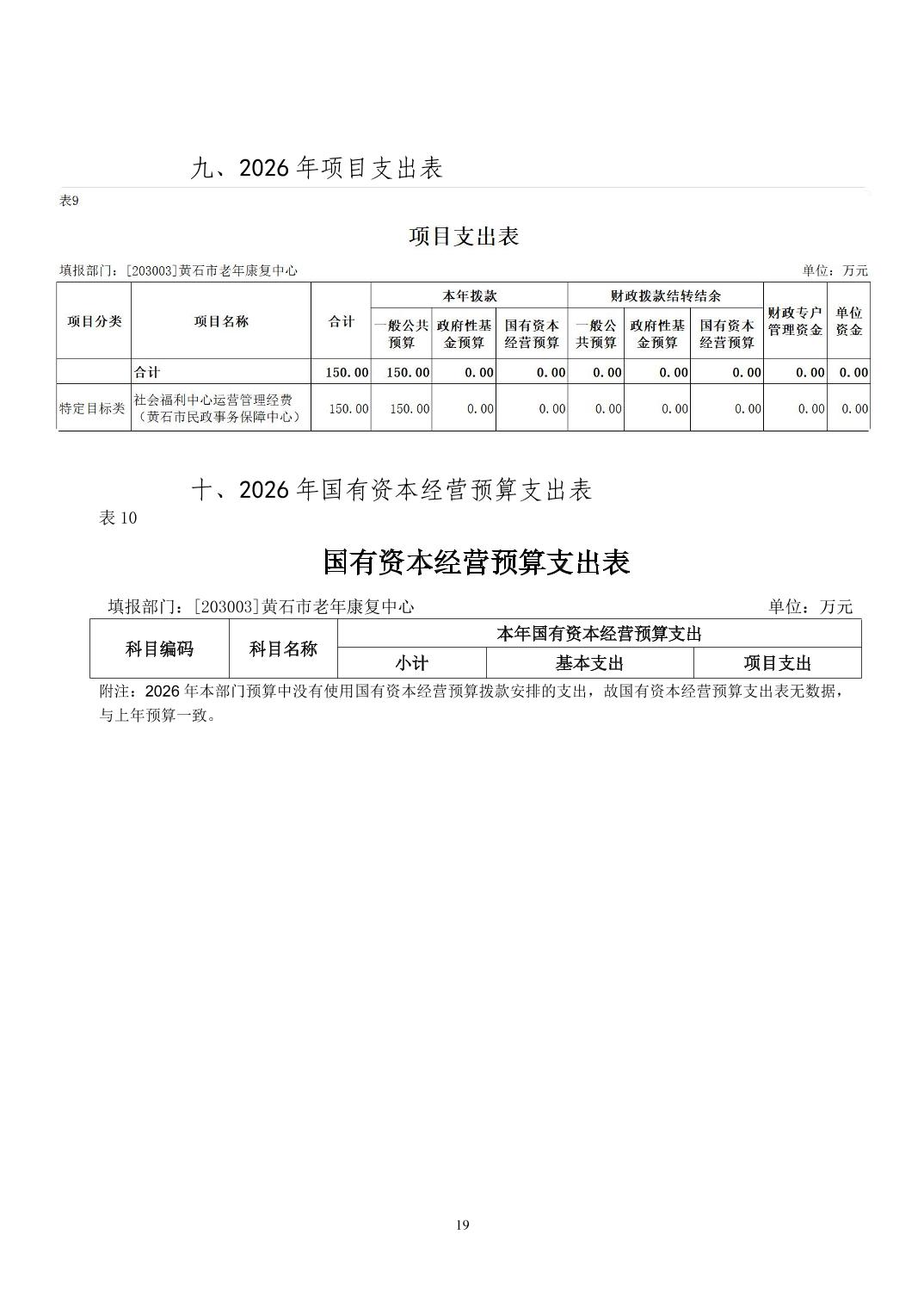 2026年度黄石市老年康复中心部门预算公开情况说明