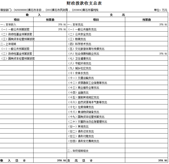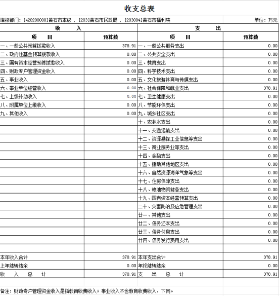 按照综合预算的原则,黄石市福利院所有收入和支出均纳入部门预算管理。