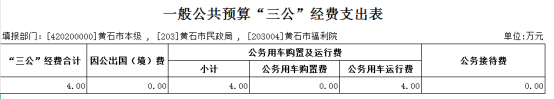 (2)公务用车运行费4万元,与上年对比无增减变化,与上年预算持平。