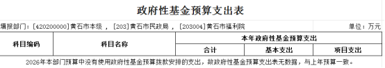 2026年本单位预算中没有使用政府性基金预算拨款安排的支出,故政府性基金预算支出表无数据,与上年一致。