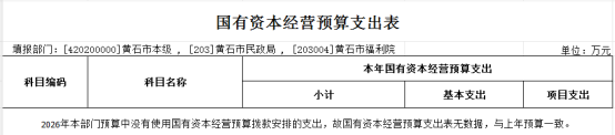2026年本单位预算中没有使用国有资本经营预算的支 出,故国有资本经营预算支出表无数据,与上年一致。
