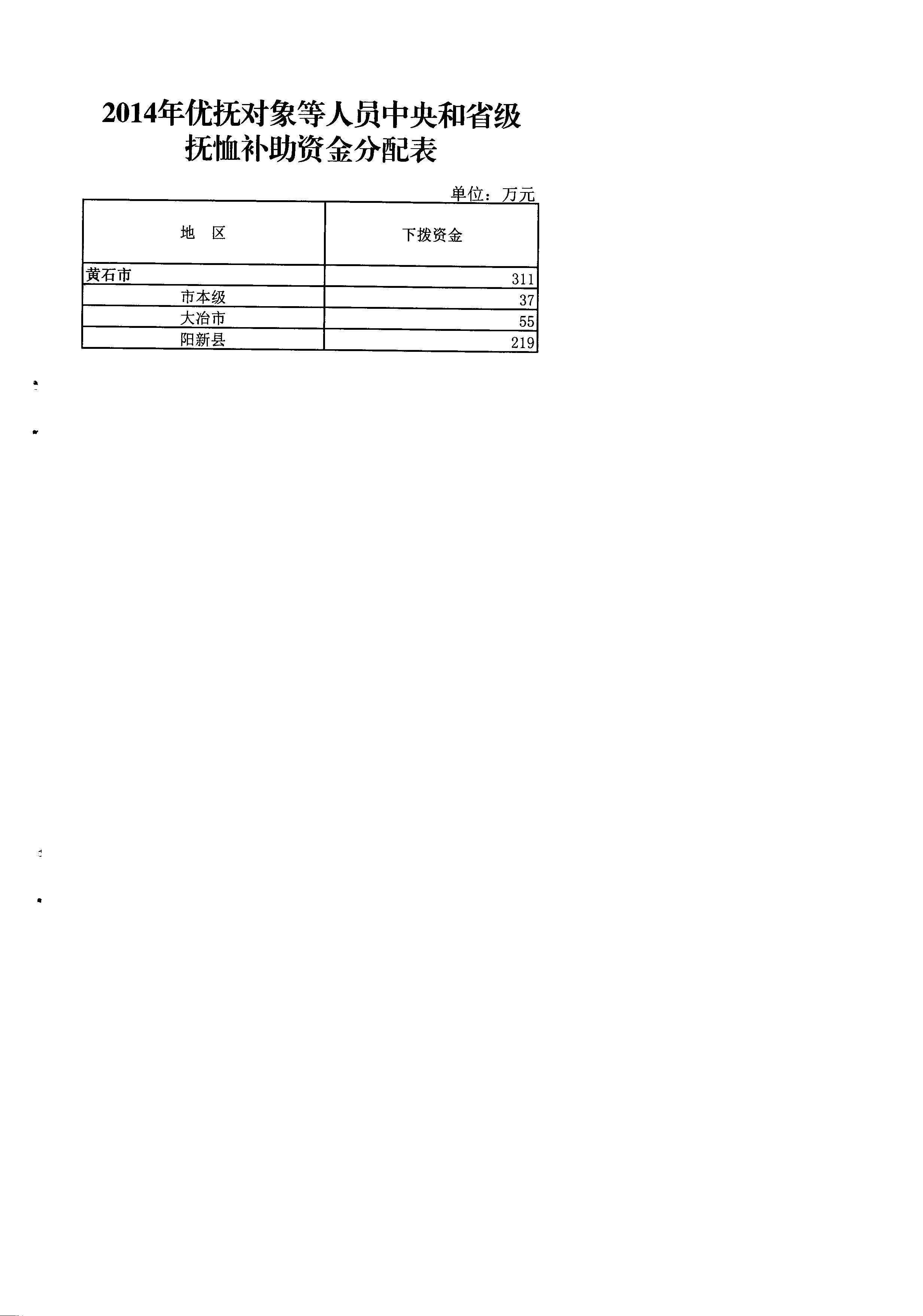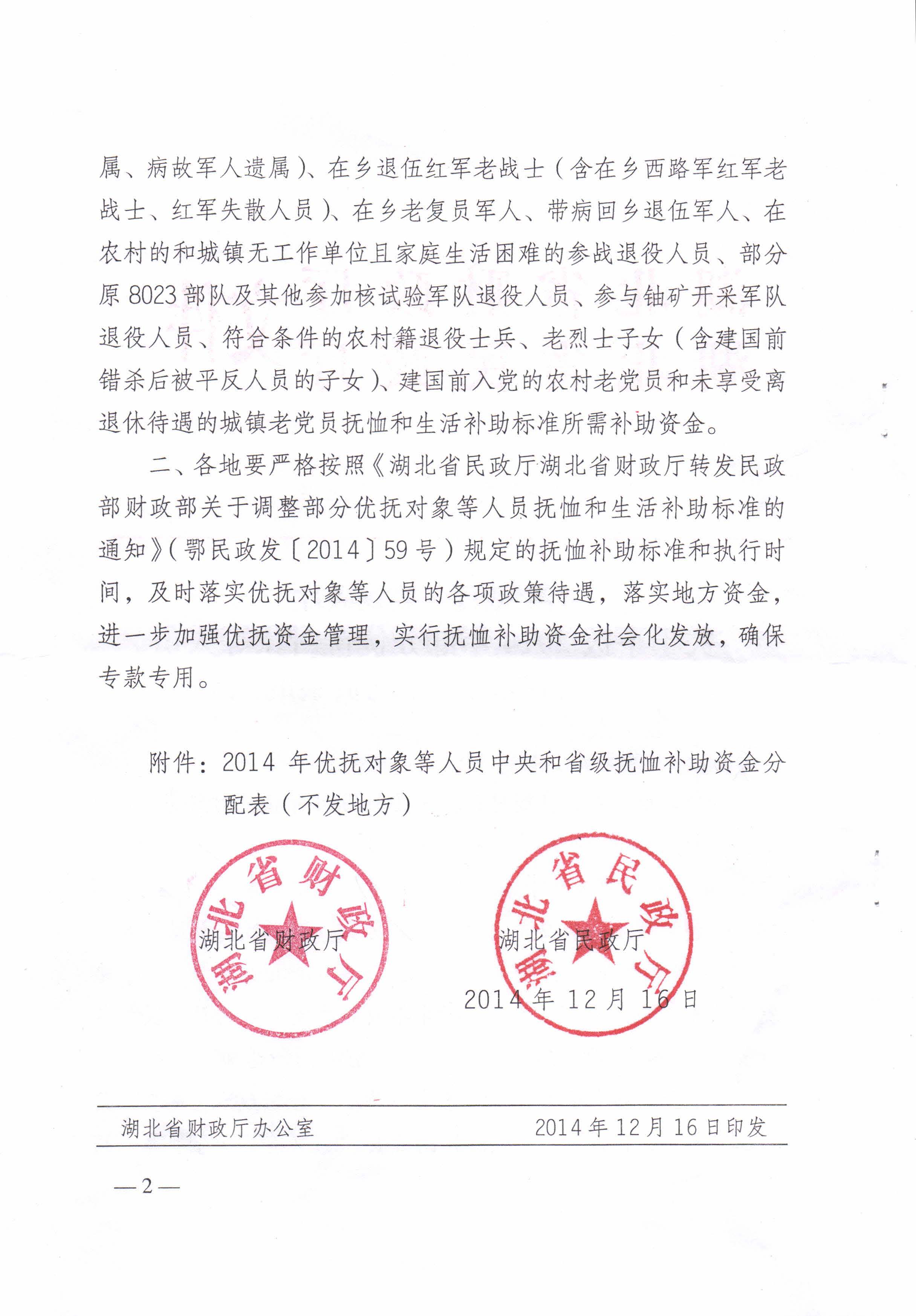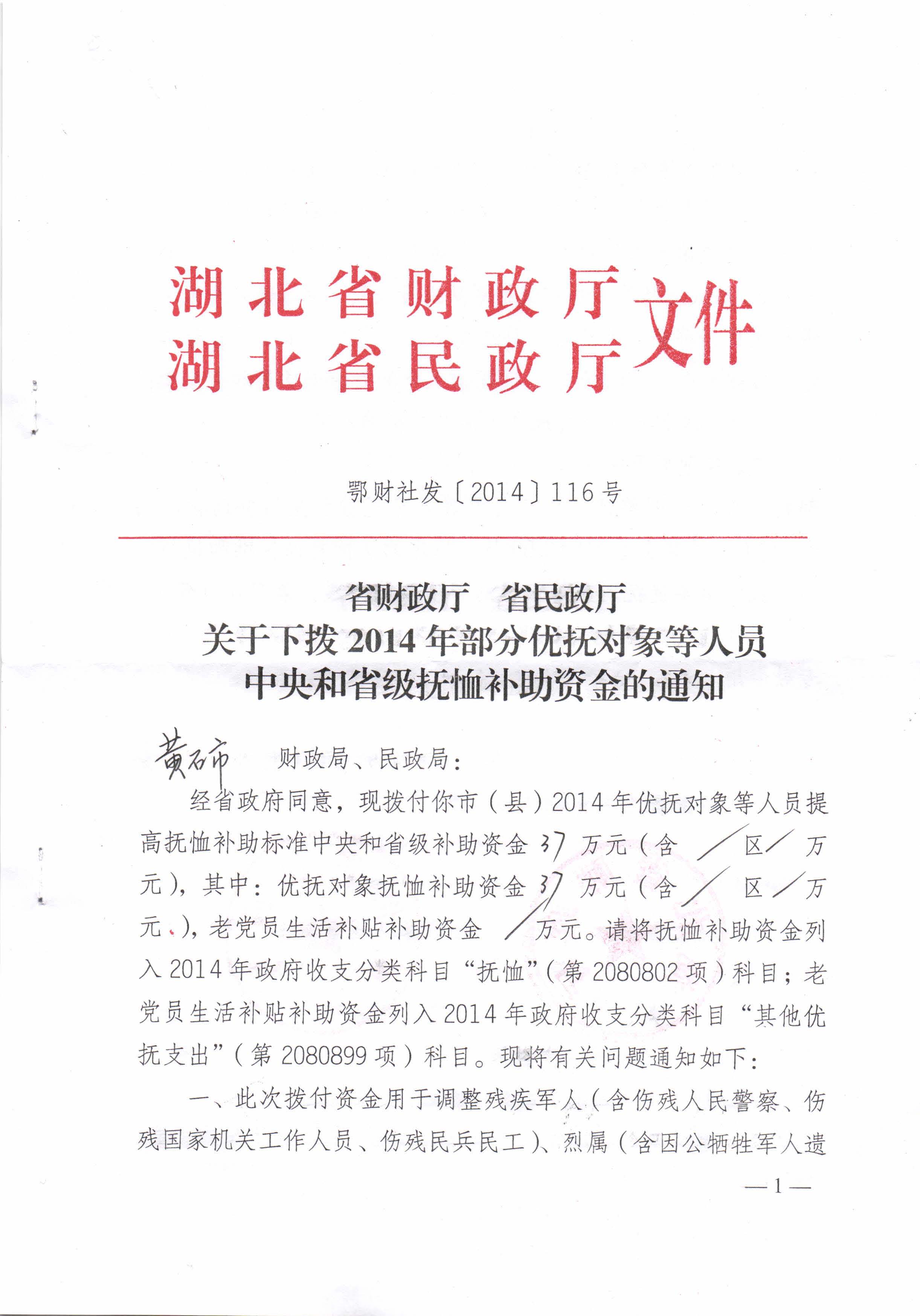 1. 省财政厅 省民政厅关于下拨2014年部分优抚对象等人员中央和省级抚恤补助资金的通知