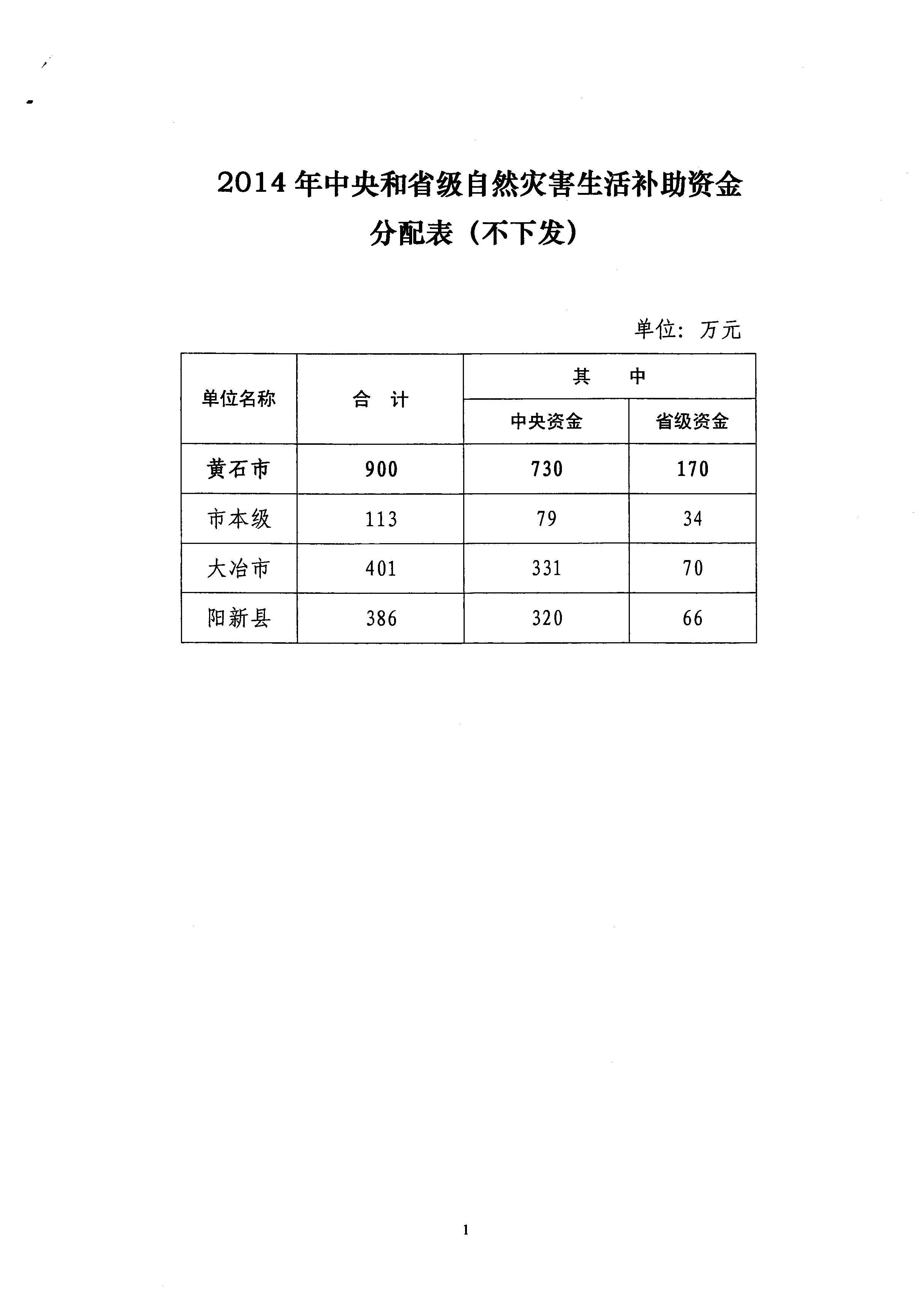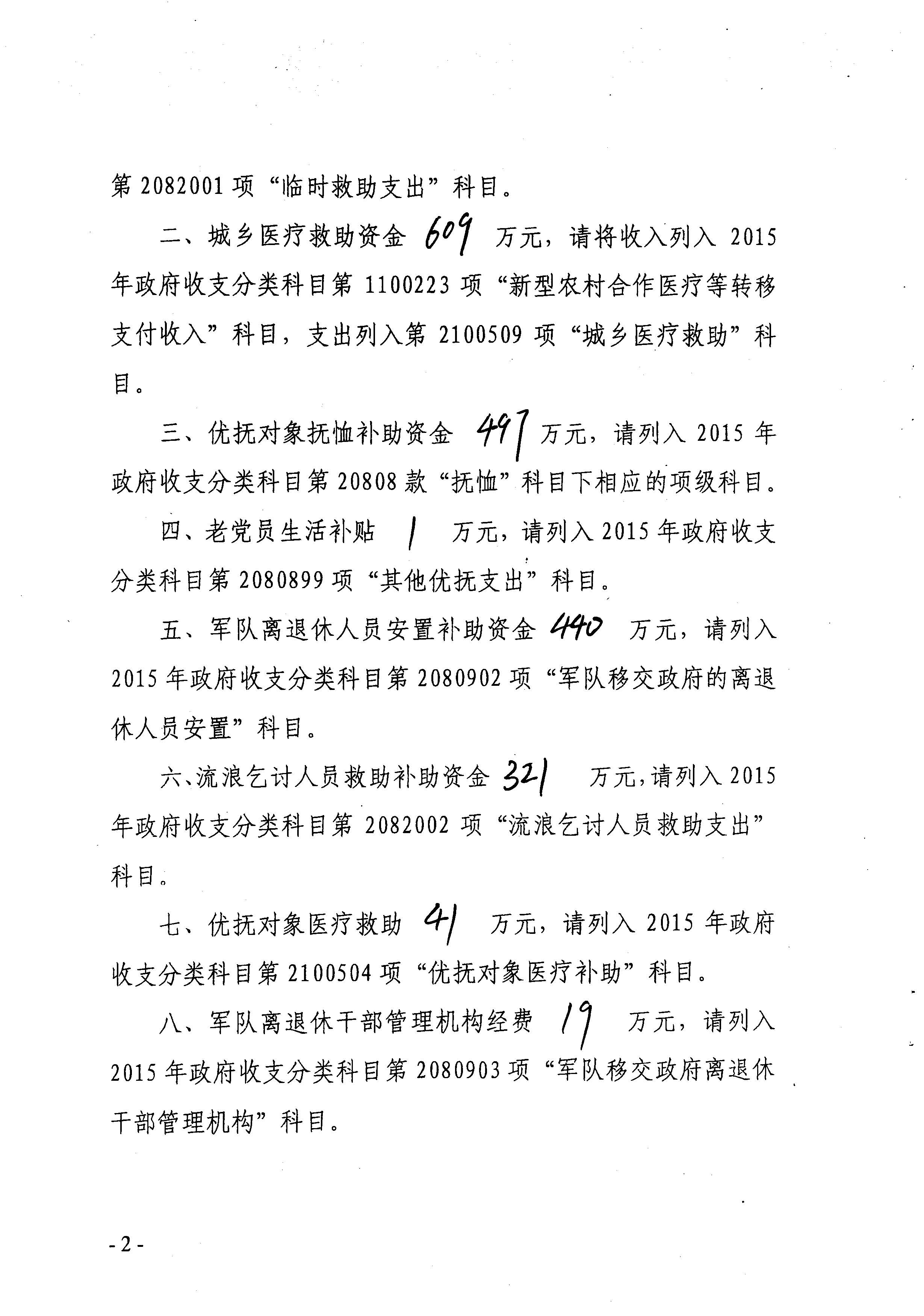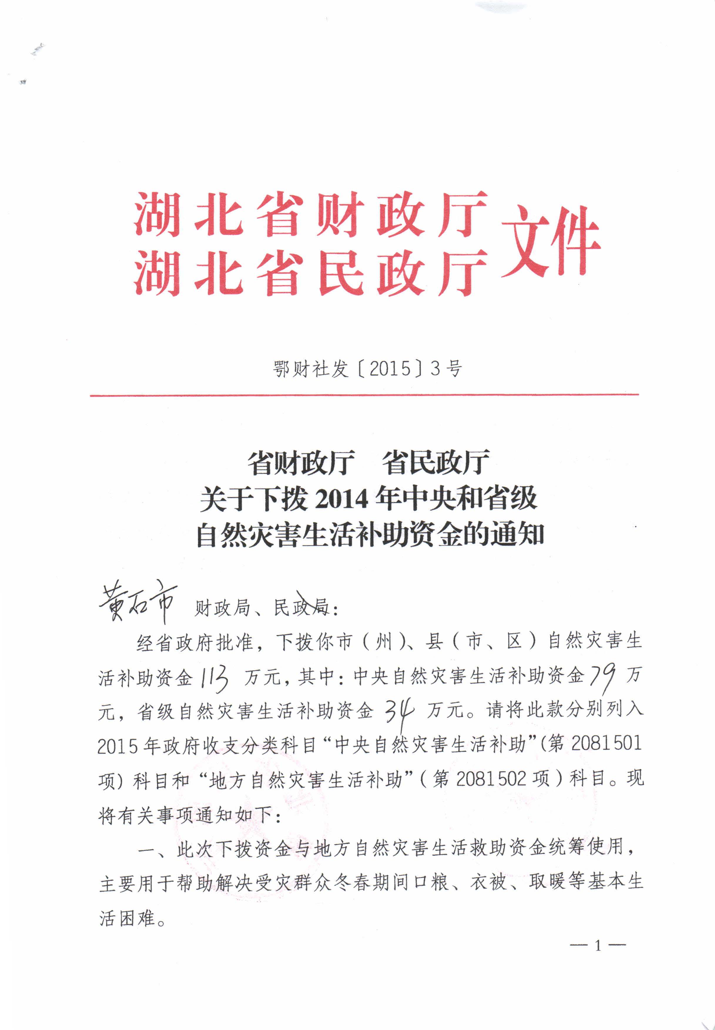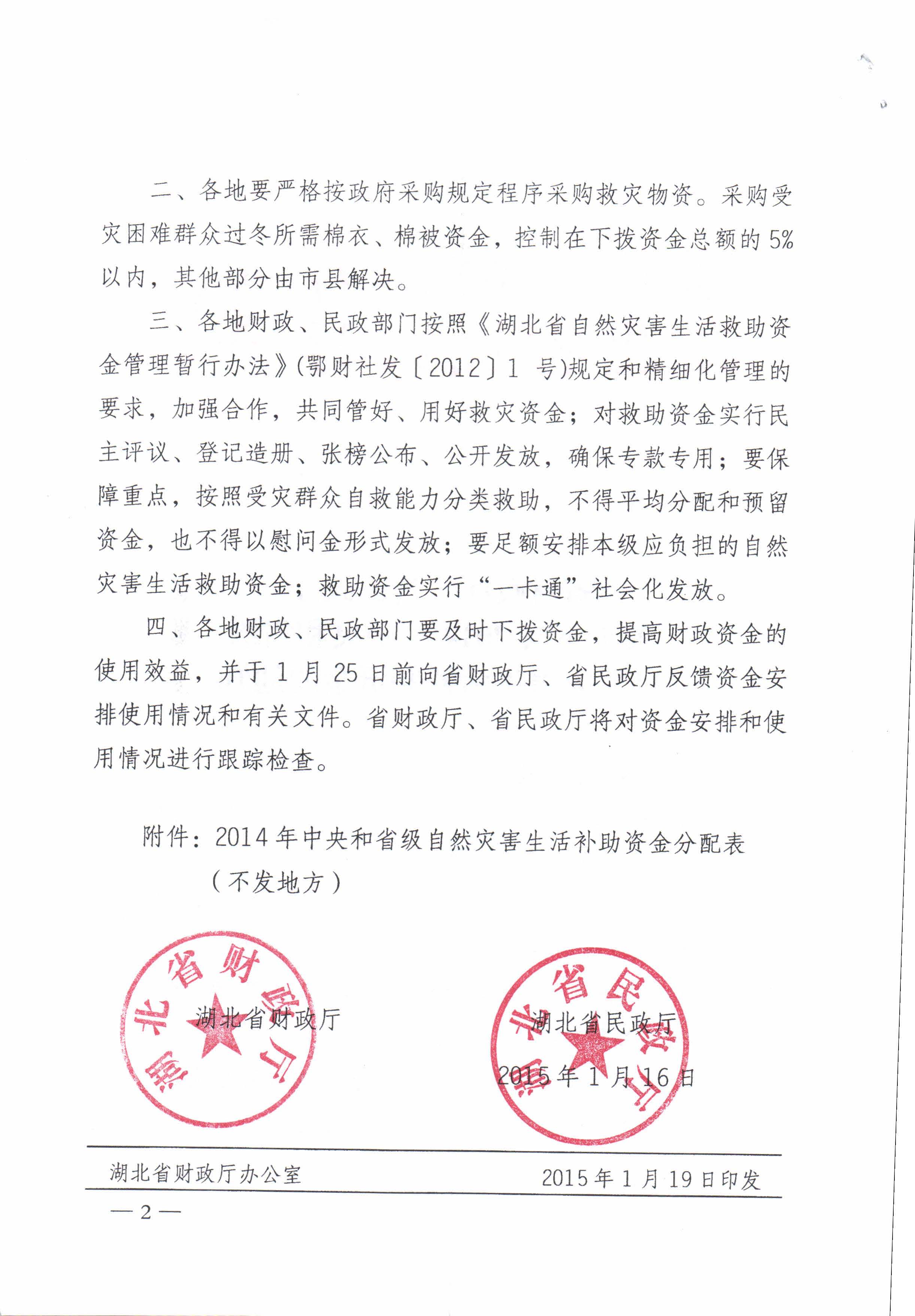 2.省财政厅 省民政厅关于下拨2014年中央和省级自然灾害生活补助资金的通知