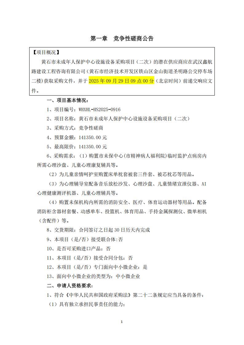 黄石市未成年人保护中心设施设备采购项目(二次)