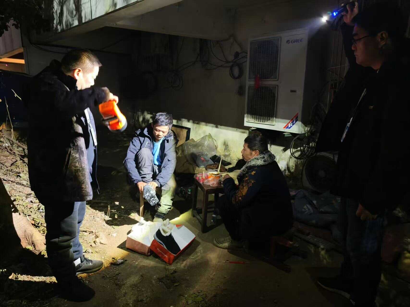 随后,在文化宫周边,工作人员发现两名露宿男子,分别来自武穴和鄂州。两人均表示不愿入站救助,工作人员为他们发放了足量的自热食品、饮用水以及御寒衣物等物资,确保其基本温饱得到临时保障。