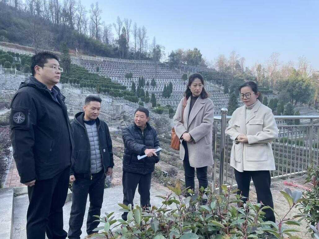 在马鞍山公墓、飞云陵园现场,调研组详细了解到墓地总体规模、现有存量、群众生态安葬需求等方面的情况。调研组强调要紧扣“保供、保安全”这根底线,针对剩余可售墓位不足的实际情况,需提前做好谋划,争取相关部门政策支持,持续做好民生保障,解决民生需求;要抓实抓细墓区安全生产管理工作,在场所区域内设置安全提示标牌,常态化开展安全隐患排查治理,全力保障群众祭祀环境安全有序。