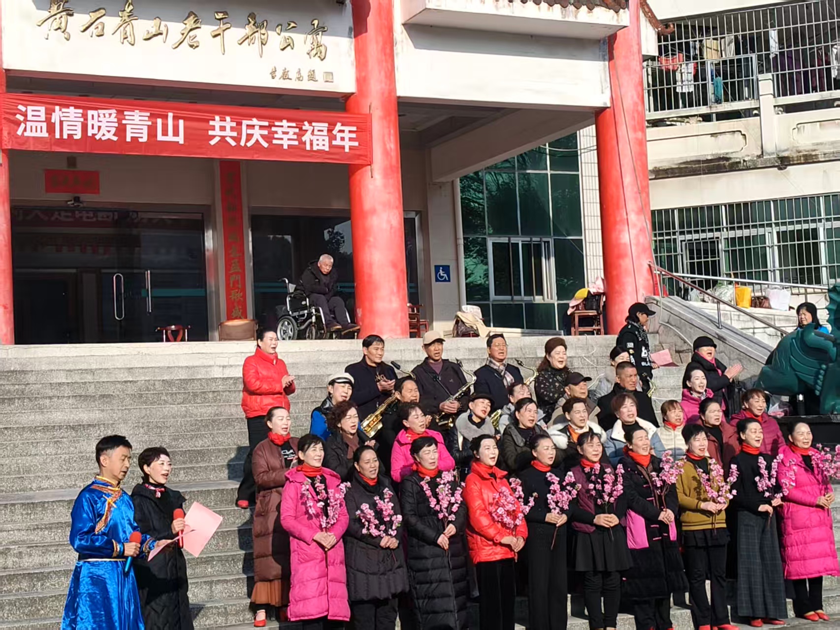 开放日不仅止于观看,更是一次深度参与和体验的机会。12月27日,区民政局联合青山老年公寓精心筹备了丰富多样的文艺联欢活动。大家齐聚院内大厅,观看由黄石港区石榴红艺术团给老人带来的“暖冬迎新年” 为主题的文艺联欢表演,让老人们在温馨喜庆的氛围中迎接崭新的一年。