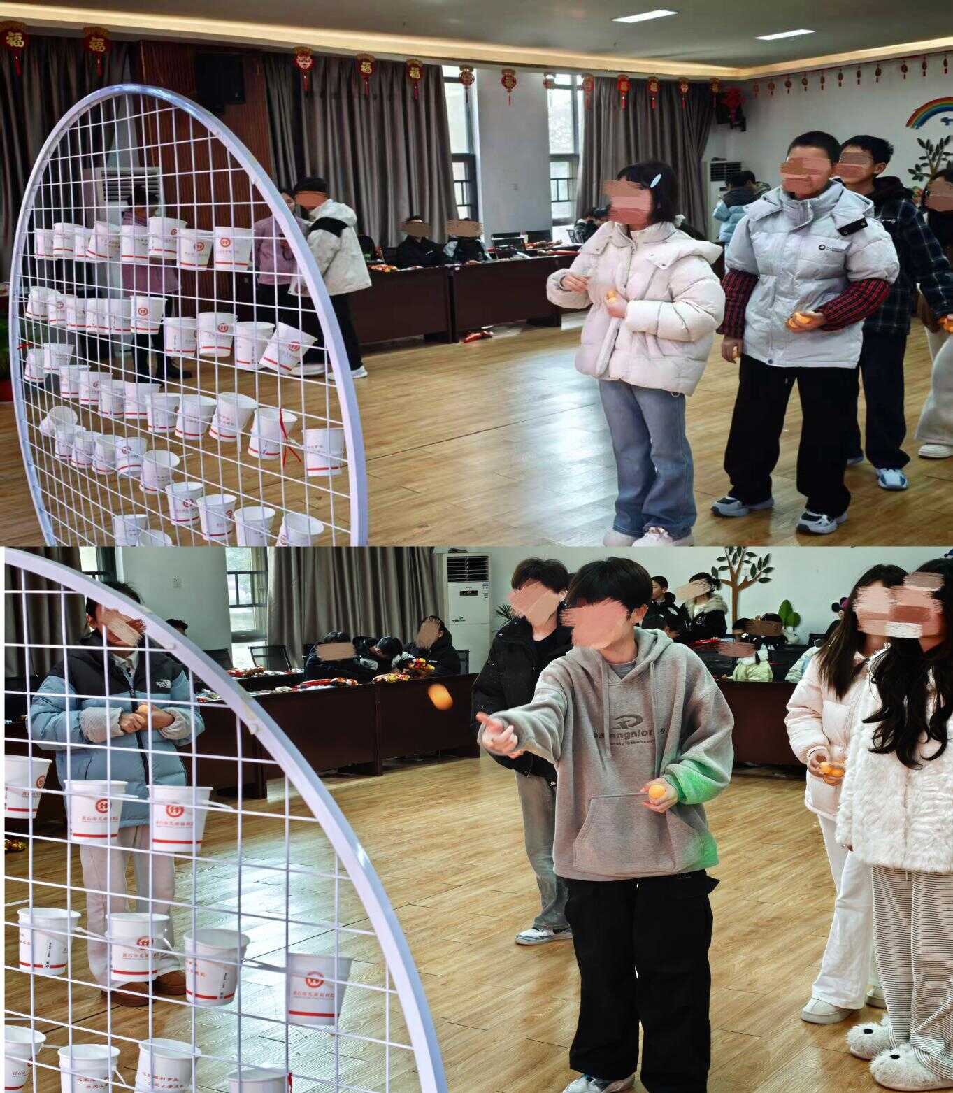 活动在温馨活泼的氛围中拉开帷幕。孩子们通过钢琴独奏、诗朗诵、吉他弹唱及集体合唱等多种形式的才艺展示,展现了积极向上的精神风貌。文化传承手工《瑞狮佑安,马到成功》将春节习俗与生肖文化相结合,让孩子们在动手实践中感受传统文化的魅力;趣味游戏环节设置“赶鸡入笼”“幸福投投乐”等趣味项目,分组竞赛、互动比拼,孩子们在游戏中收获快乐,现场欢声笑语不断,节日氛围浓厚。