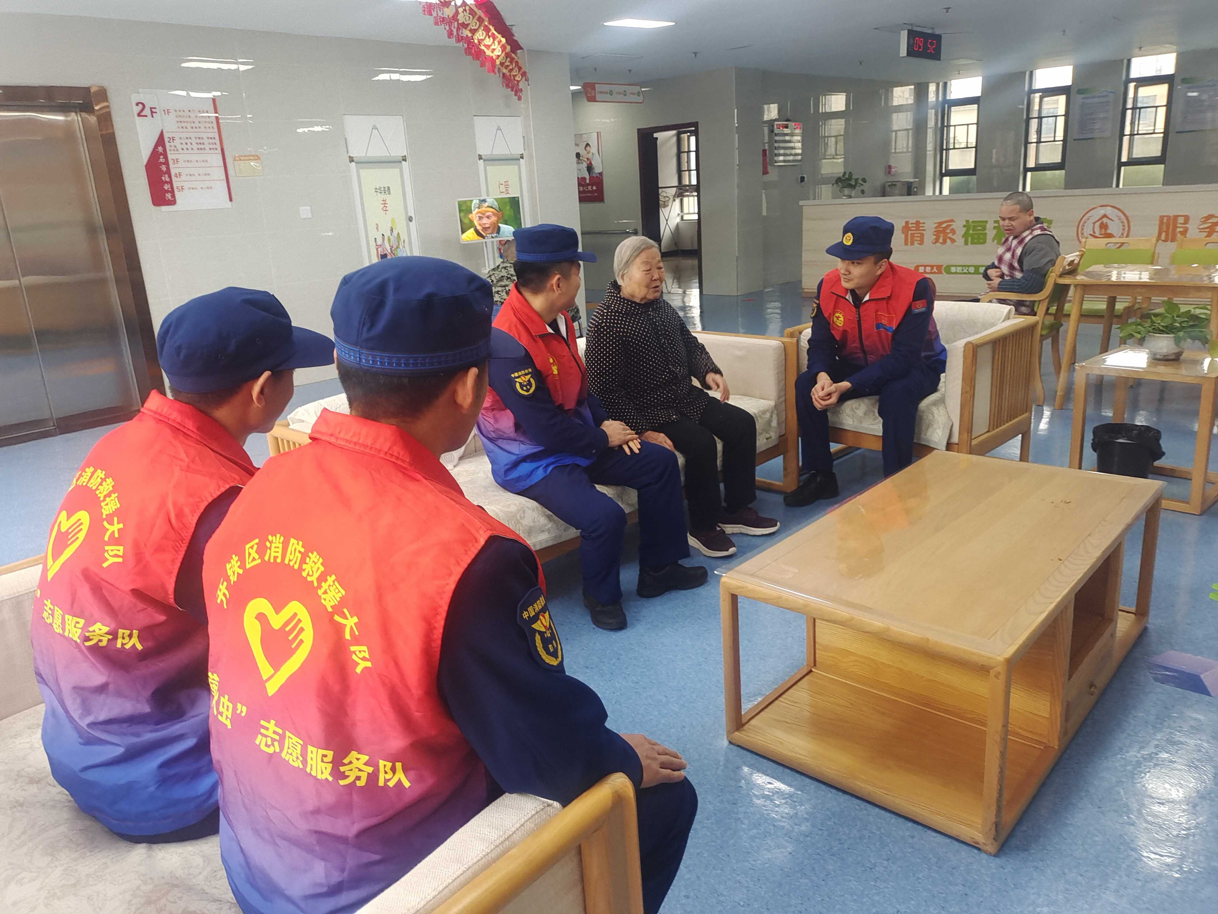活动伊始,身着“火焰蓝”制服的消防指战员们便迅速融入了福利院的大家庭。他们分组行动,有的拿起扫帚、抹布,认真清扫院落角落,经过一番努力,院内的环境显得更加整洁明亮。更多的指战员则来到老人身边,与老人促膝长谈,关切询问他们的身体状况和生活起居,空气中弥漫着浓浓的温情。