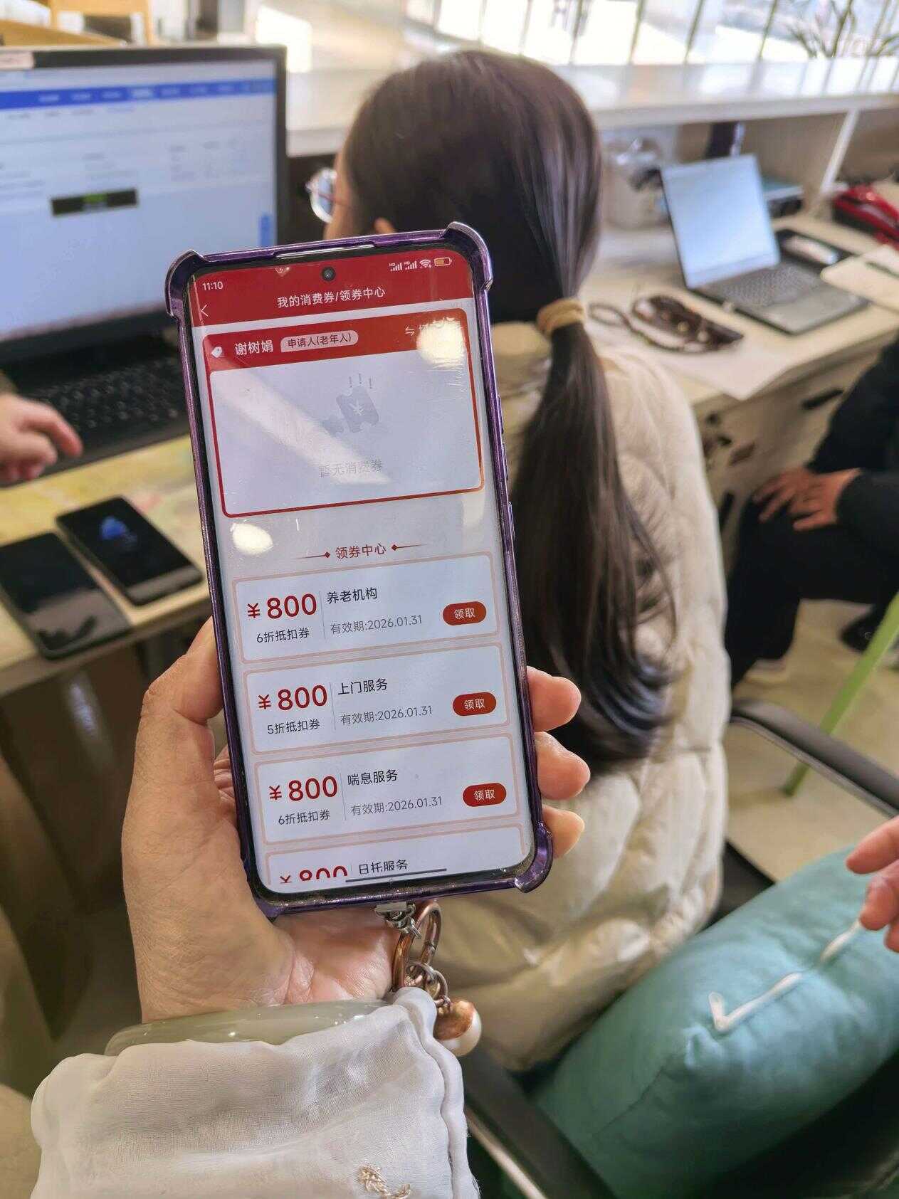 “政策好,操作也不复杂,我家里的老人能实实在在享受到。”1月12日上午,下陆东钢养护院的失能老人谢树娟的姑娘刘茜在工作人员指导下,通过“民政通”平台顺利完成下陆区首笔养老服务消费券核销,全程用时不到10分钟,标志着这项全国推行的惠民政策在黄石正式落地见效。